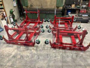 Preneet Engine Transport Stands feature elastomer shock isolation mount designs that keep natural frequencies between 7 and 10 Hz while reducing shock and vibration loads during shipment. Mostransport stands are bootstrap compliant, feature heavy duty locking casters and tow bars, and have been proof-loaded to OEM specifications. Our standard paint is Skydrol resistant Red, but customer specified colors are also available.