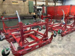 Preneet Engine Transport Stands feature elastomer shock isolation mount designs that keep natural frequencies between 7 and 10 Hz while reducing shock and vibration loads during shipment. Mostransport stands are bootstrap compliant, feature heavy duty locking casters and tow bars, and have been proof-loaded to OEM specifications. Our standard paint is Skydrol resistant Red, but customer specified colors are also available.